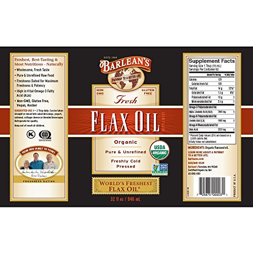 Flaxseed oil is nature’s richest source of vegetable-based vital Omega-3 fatty acids. Barlean’s 100% Organic Flax Oil is known as the “world’s freshest” because, just like all the fine family of Barlean’s products, it is cold pressed daily, made to order for your health food store, air-delivered and dated for freshness. The result is the freshest, best-tasting flax oil available. And Barlean’s flaxseed oil is pure, unfiltered and unrefined – just as nature intended. Our proprietary cold pressing results in clean, delicious oil that doesn’t need to be filtered to achieve its fresh flavor. Barlean’s Fresh Flax Oil is ideal for those who aspire to nutritionally support: Heart Health*, Healthy Cholesterol Levels*, Joint Mobility & Bone Density*, Energy & Endurance*, Healthy Blood Glucose*, Skin, Hair & Nail Health*. * These statements have not been evaluated by the Food and Drug Administration. This product is not intended to diagnose, treat, cure or prevent disease.Feature