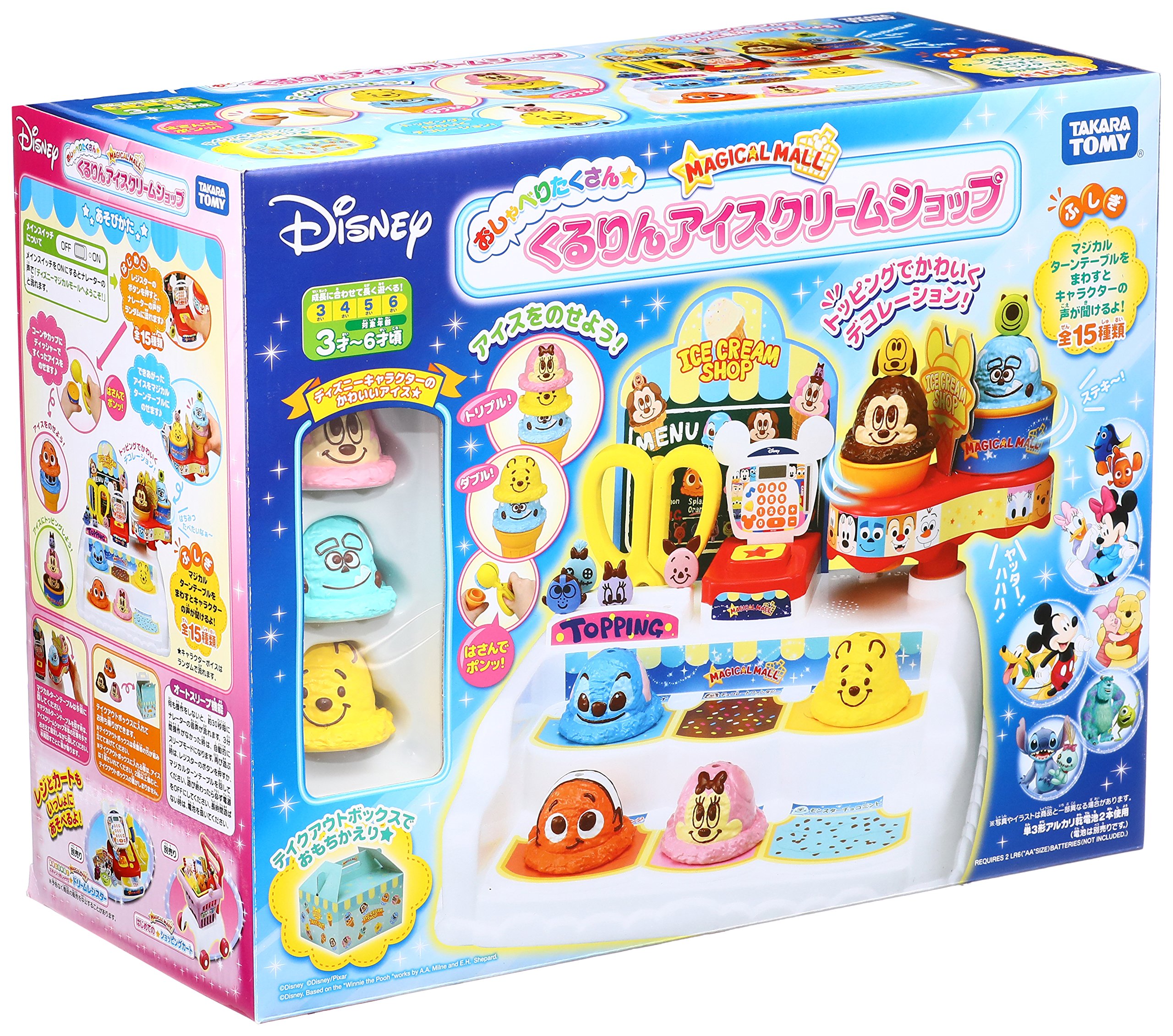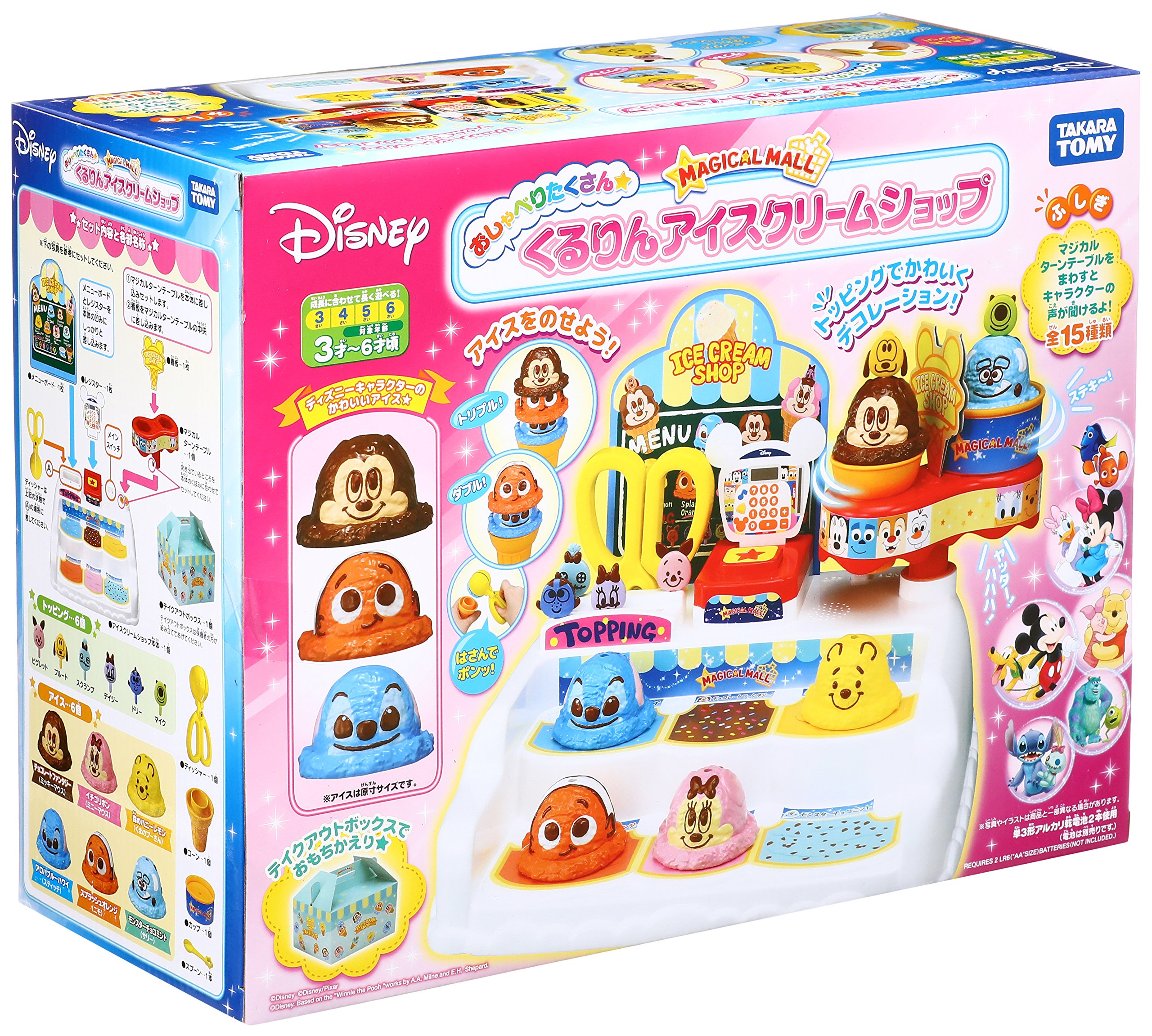 Place the ice cubes scooped with dish on a cup or cone and put it on a magic turntable and you can hear the character's chatter.