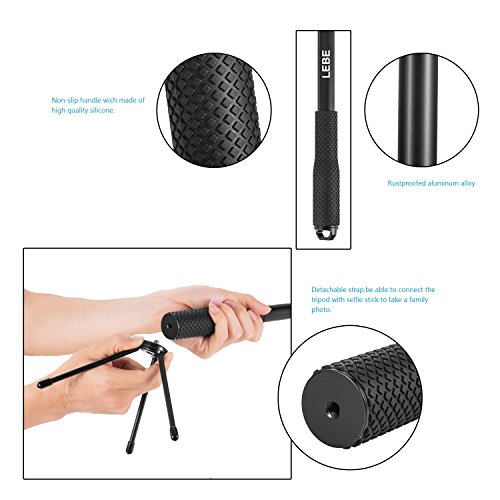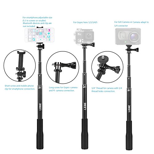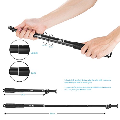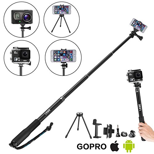 LEBE Adjustable Gopro Selfie Stick with Tripod for Gopro Hero 5 4 3 3+ 2 1,3.6ft Waterproof Selfie Pole for Phone,SLR Camera Telescoping Monopod with Mount Adapter and Gopro Remote Housing Gifted