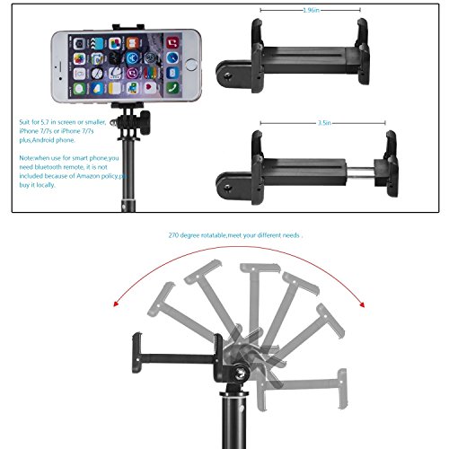 ★Multifunction:3-in-1 selfie stick, you can use it as selfie stick for Gopro,SLR Camera,1/4 thread compact camera iPhone and Andriod,you can also use it to take a group photo by installing the Tripod,and free your hands when you use it as mobile phone stand watching videos.
