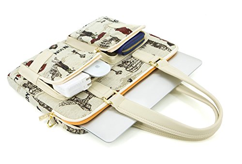 [Description] Kinmac New design laptop messenger bag is light and easy to carry Two pockets in front can hold power adapter _mouse_cellphone and so on 6mm thick form in the middle_ supper shock-proof Soft fur inner keep your laptop from scratch Dimensions: 355mmx245mmx40mm (LxWxH) Can hold 11 inch & 12inch & 13 inch laptop and macbook air 11 / macbook (air)pro 13