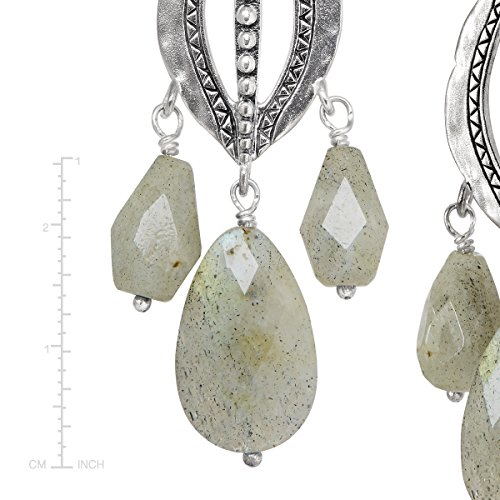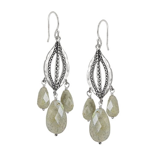 Each Flora Earring boasts three faceted drops in varying shades of bezel-set gray labradorite totaling 25 1/10 ct. Each stone hangs down from impeccably detailed sterling silver frames. Turn heads when you pair these dressy earrings with a lovely lace dress or keep it casual by wearing them with a chic, chambray shirt. Earrings measure 2 1/2 by 1/2 inches, finished with French-wire back-findings. Piece comes with a ".925" sterling silver stamp as a symbol of guaranteed product quality.