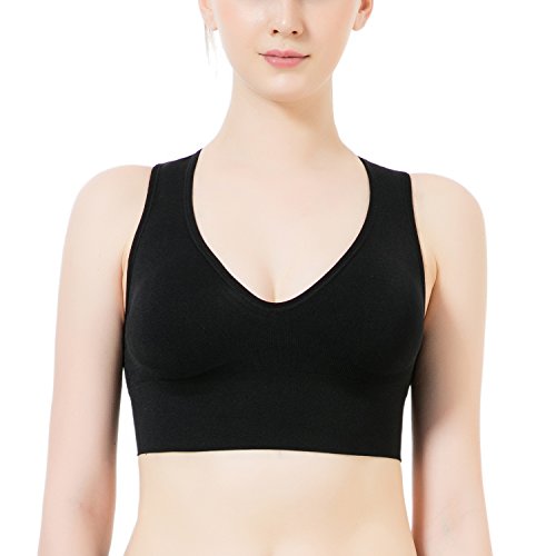 -. Title : CelerSport Women's Seamless Racerback Sports Bra Medium Impact Padded Workout Yoga Bras