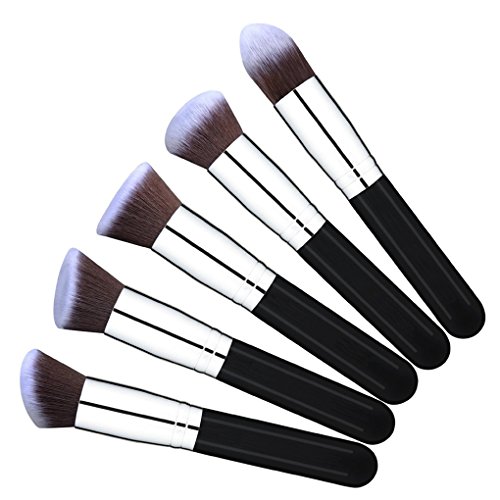 - ✔ Ambox Premium Synthetic Kabuki Makeup Brush Set is perfect for both beginners and professional makeup artist. Five different types brushes(Angled, Round, Flat, Flat Angled, Tapered ) provide easy and professional solutions for basic cosmetics foundation. For example, the angled makeup brush is perfect for blush and bronzer. The small flat brush is for stipple concealer and blemishes.