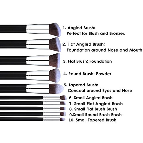 Ambox 10 Pieces Makeup Brushes Premium Makeup Brush Set Synthetic Kabuki Cosmetics Foundation Blending Blush Eyeliner Face Powder Brush Makeup...