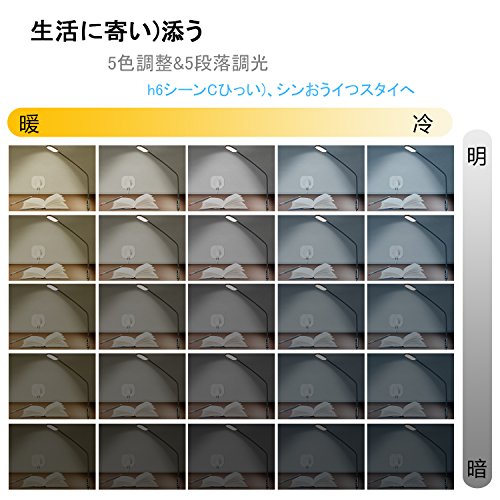 5段階調光・5段階調色なので用途に合わせてお好みの灯りを楽しみ