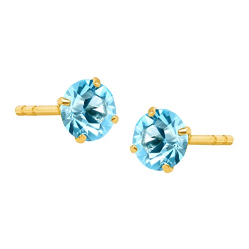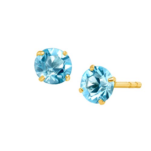 These petite earrings are the perfect pop of color for your collection! Round-cut natural aquamarines, totaling 5/8 ct, are crafted in 10K gold settings and finished with posts with friction-backs. Pieces measure 3/16 by 3/16 inches.Feature