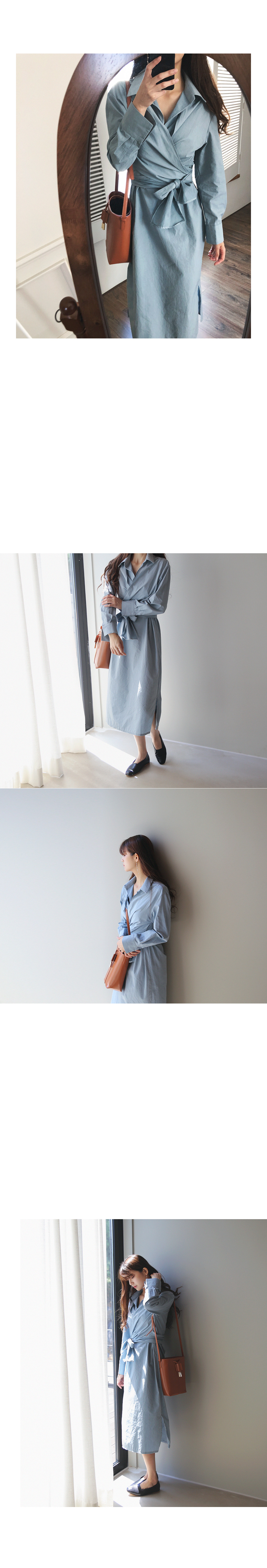 얇고 톡톡한 코튼 소재로 편안하면서 기분좋게 착용되는 랩 원피스에요