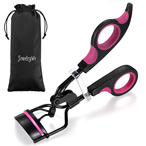 JewelryWe Stainless Steel Eyelash Curler Best Lash Curling Tool with 2 Purple Replacement Pads