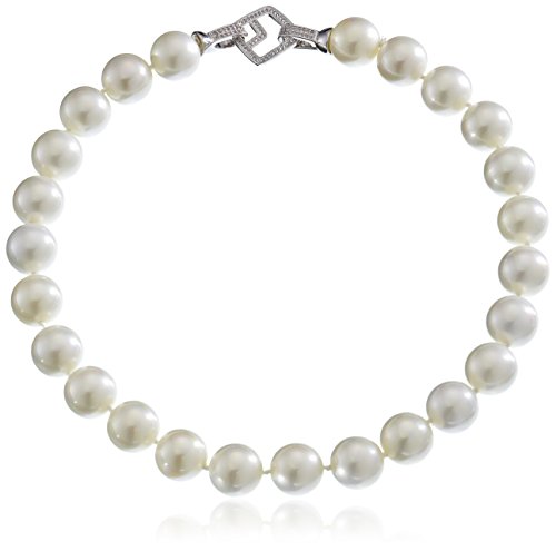 Nina Indra 14mm Knotted Shell with Cubic Zirconia Clasp Pearl Strands