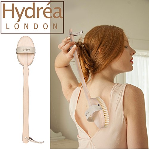 Hydrea London Exfoliating Body Scrub - Wet Dry Brush - Extra Firm Cactus Bristles - Detachable Handle for Skin Cleansing