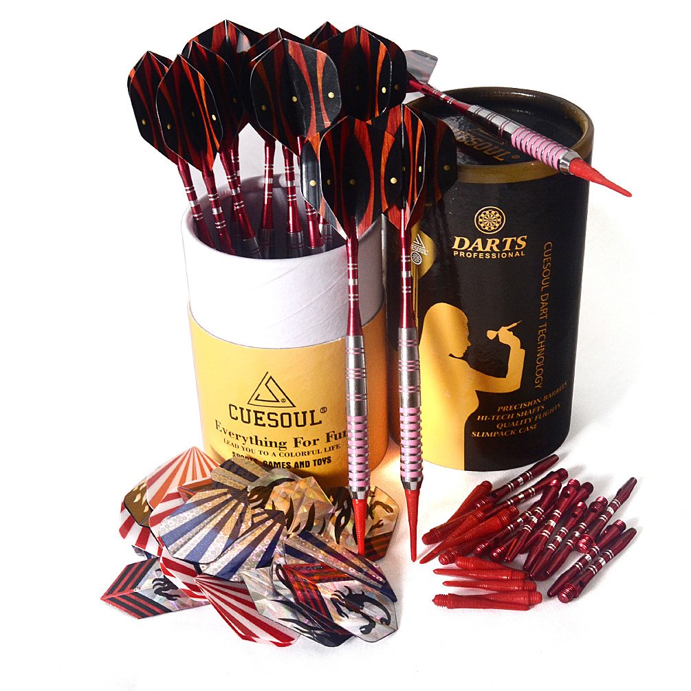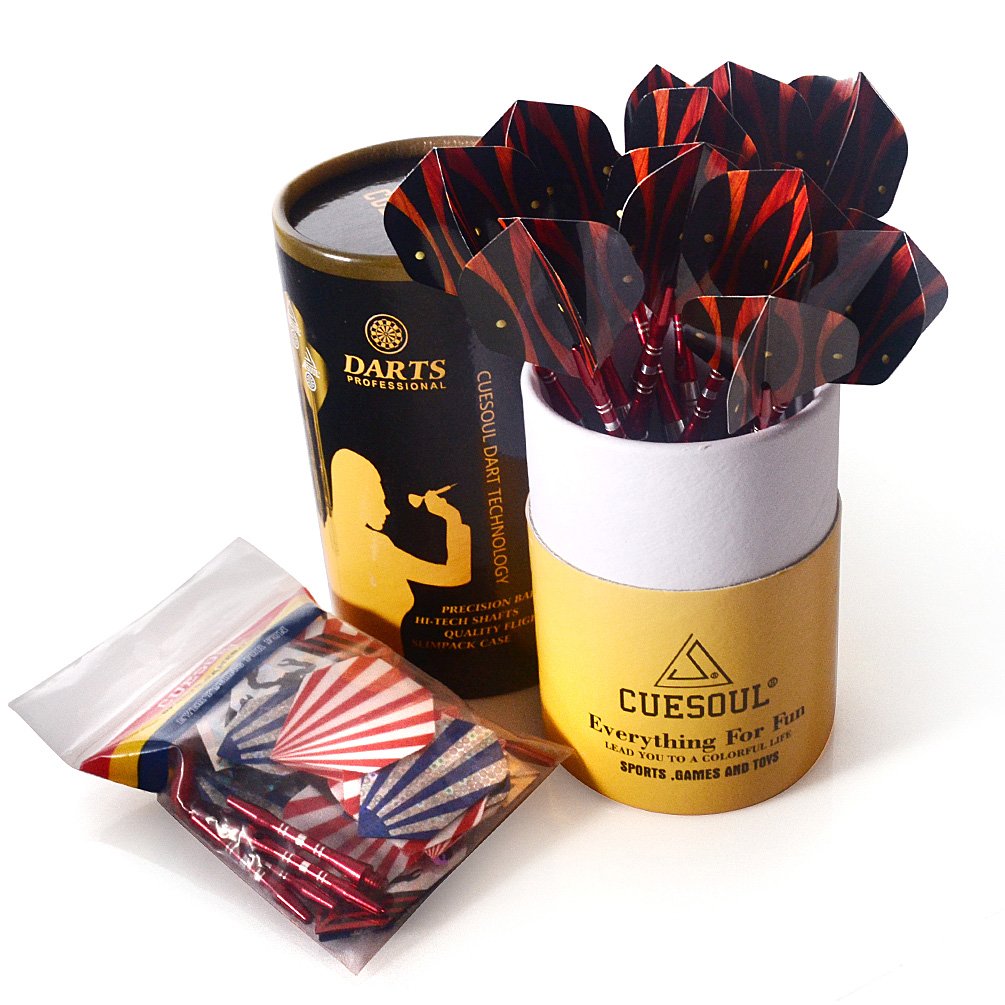 Item includes: 12 darts, material brass, 48 flights, 12 shafts + 12 points, 2 BA soft tip point, CUESOUL circular cylinder, 1 CUESOUL original, free shipping, search keyword CUESOUL.