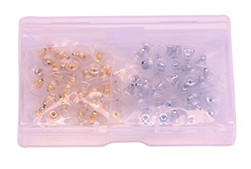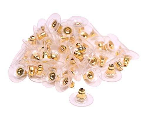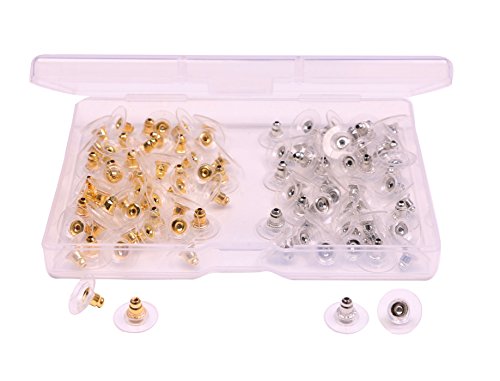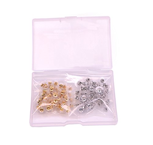 Shapenty Plastic Metal Ear Nut Backings Replacements Bullet Clutch Earring Safety Backs Stopper with Pad, Silver and Gold, 100PCS/50Pairs