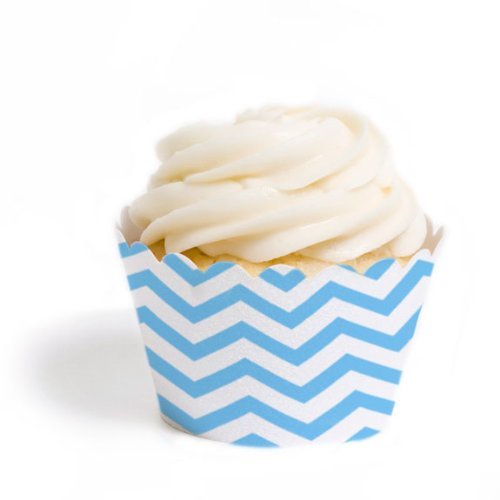 Dress My Cupcake Standard Cupcake Wrappers, Chevron, Sky Blue, Set of 50