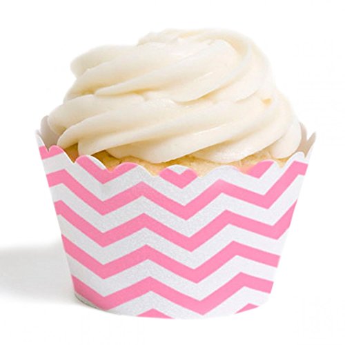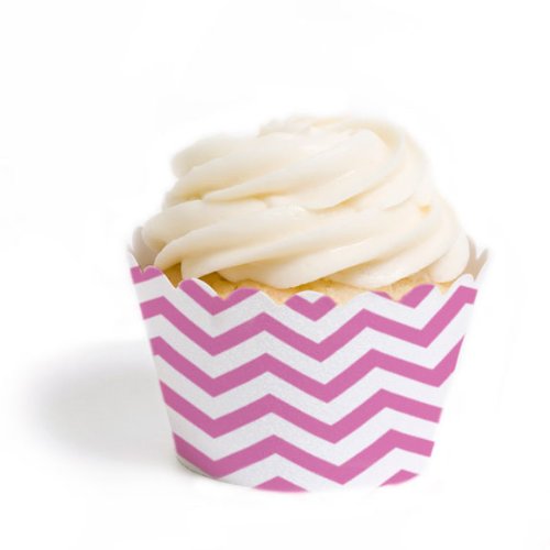 Dress My Cupcake Standard Cupcake Wrappers, Chevron, Pink, Set of 12