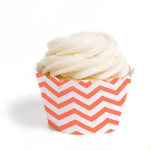 Dress My Cupcake Standard Cupcake Wrappers, Chevron, Coral, Set of 12
