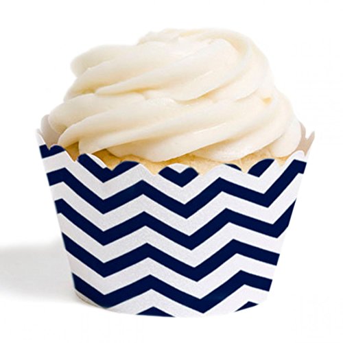 Dress My Cupcake Standard Cupcake Wrappers, Chevron, Navy Blue, Set of 12