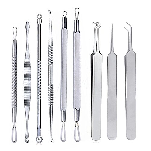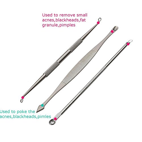 Stainless steel: All tools of blackhead remover kit are made from Stainless steel.You can safely sterilize all tools without them corroding or reacting negatively