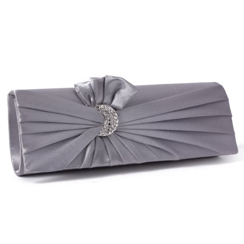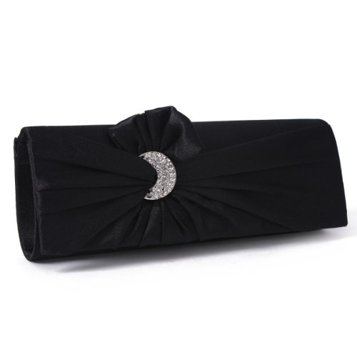 -. Title : Damara Womens Pleated Satin Moon Shape Crystal Clutch Evening Bag