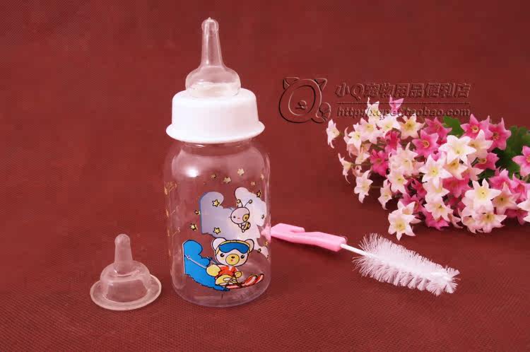 The kittens, puppies mouth than the human infant small many, to the kitten,puppy feeding should be used specifically for the small mouth design. Brush to clean the bottle after use can be used matching.