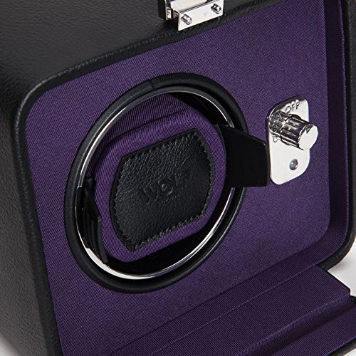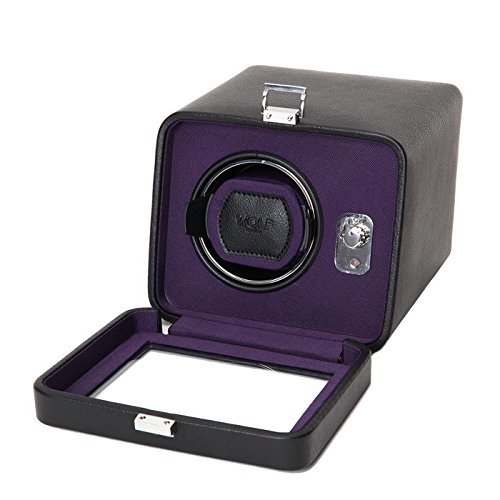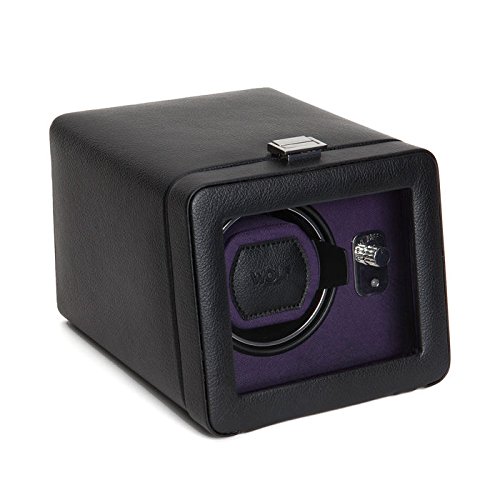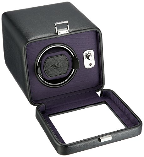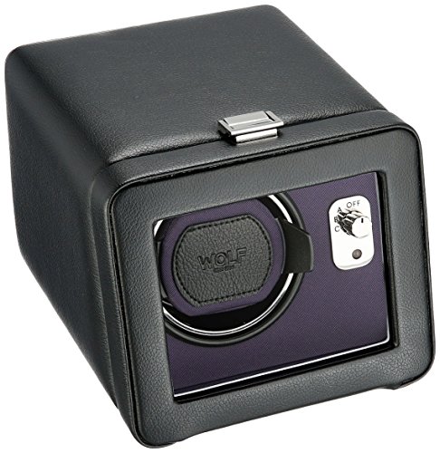 Studio : Wolf Designs Inc Publisher : Wolf Designs Inc Binding : Kitchen Product Description The mid-century inspired WOLF Windsor Single Watch Winder with Cover is both luxury display case and precision instrument, with a plethora of customizable settings that guarantee top-notch performance from your timepiece. The sleek design comes in the pebbled faux leather body and textured silk faceplate color of your choice with stunning chrome-finished hardware. The clear glass cover protects a single winding module with a generous cuff, as well as the easy-to-use control panel. Includes a universal AC power adapter but is also compatible with batteries (not included). Additional Features Rotates 900 turns per day 10-second start delay Intermittent rotation with pre-programmed pause and sleep phases Clockwise, counterclockwise, and bi-directional settings Bi-directional doubles the number of turns per day Cuff fits bigger, heavier watches -- up to a 52mm case Locks cuff into rotator drum securely Includes universal AC power adapter Can be powered by D-Cell/lithium batteries (sold separately) Dimensions: 6.5W x 8D x 5.25H in.. Single winder module. Choose from available leather color options. Textured silk lining. Glass cover and chrome hardware. 0