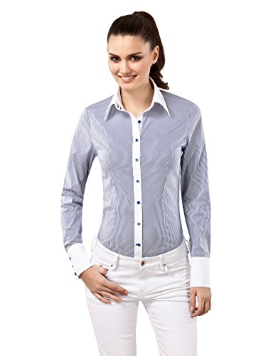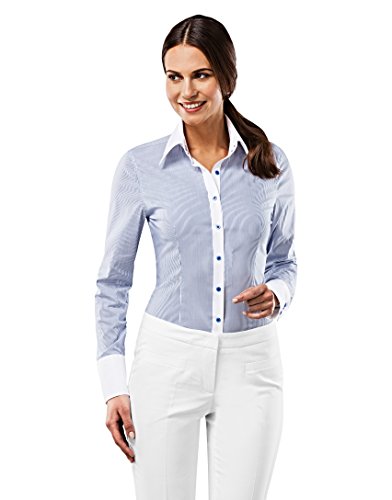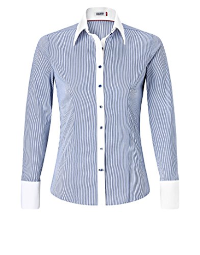 This blouse will guarantee a glamourous appearance not only at the office but also with a casual look, combined with blue-jeans and a cardigan, this blouse stands for a sense of style and trend. The fine stripes and the perfect cut will emphasize your figure.