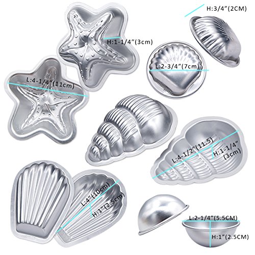 MelonBoat Set of 5 Beach Theme Set Aluminum Metal Bath Bomb Molds Fizzies, Bath Salts, Cupcake Baking Mold, Soap Molds Shapes Kit, Kids DIY Homemade Art Supplies