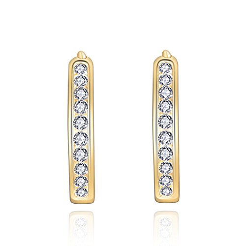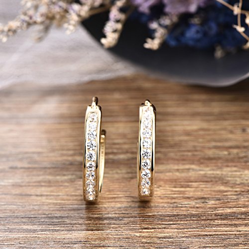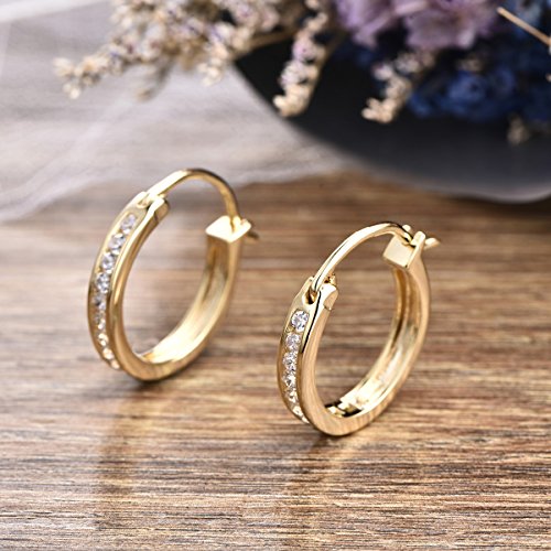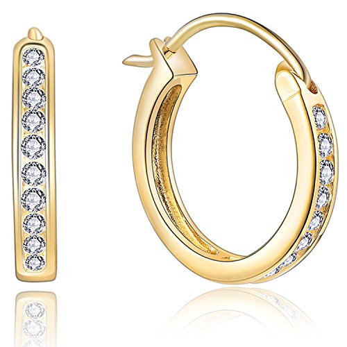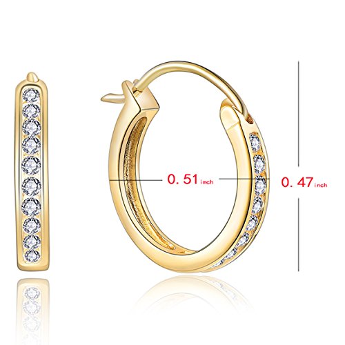 Sterling Silver Hoop Huggie Earrings-YL 18k Yellow Gold 2mm Thickness Cubic Zirconia CZ Hinged Front Hoop Earrings Women Girls