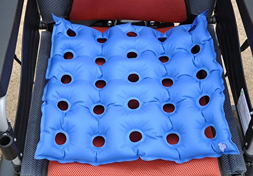 -. Feature : COMFORTABLE SEATING : Air Waffle Seat Cushion provides comfortable, stress free sitting with a gentle layer of air that helps to eliminate pressure points . The small ring shaped holes ensures body weight is evenly distributed without putting pressure on your lower back. / RELIEVES PRESSURE : Waffle Cushion comfortably relieves pressure from stressed out muscle due to injury or seating pressure. EASY TO CLEAN & HYGIENIC : Anti-Bacterial vinyl covering which is HYGIENIC and WATER PROOF material ensures Anti Spill and makes it east to clean. / EASY TO INFLATE OR DEFLATE : The uniquely designed Self Sealing Valve of the cushion and product pump helps to inflate the cushion much faster and holds the air longer than our competition. Deflation is as easy as Inflation. Just pinch the mouth of the valve and squeeze the cushion to let air out quickly. / The Waffle Cushion also helps to provide comfort in the areas where we spend the majority of our time. Since many hospitals, nursing homes and in homecare organizations often overlook this aspect of care, namely seating applications, given that the focus is typically on bedding. We decided to invest in a product that facilitates comfortable siting, P.R.Imarily because the average adult generally spends 50 to 70 percent of their time in a seated position / Whether in wheelchairs, day chairs, or other hard surfaces, it's vital for our customers to have these surfaces covered, in order to aid in seating comfort and prevention and treatment of pressure ulcers and various other conditions.