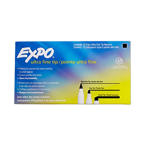 EXPO Low Odor Dry Erase Markers, Ultra-Fine Tip, Black, Box of 12