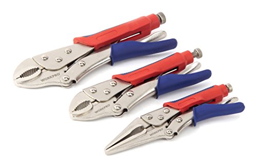 WORKPRO W001308A 3-piece Locking Pliers (10 Inch Curved Jaw, 7 Inch Curved Jaw, 6-1/2 Inch Straight Jaw)