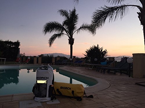 SKORCH Original dry bags, duffle bags and waterproof backpacks are ideal for kayaking, sailing, boating, camping, fishing, scuba, snorkeling, canoeing, backpacking, skiing and snowboarding trips. Pack them with your cell phones iPads, towels, goggles and other gear and head off for your ultimate outdoor experience. Rolling and clipping the top closed to achieve a tight seal will allow you to travel with total peace of mind, even if the bag falls overboard or into water. Check seal with each use