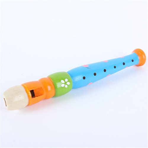 -. Feature : Material:Wooden + Eco-friendly Paint / Color:Assorted colors and patterns, we will send one randomly / Age:For Kids Above 3 Years Old / Note:1. Small toy flute - not a professional musical instrument! 2. Color displayed in photos may be slightly diffrent since monitors are not calibrated same. Hope understanding. / Item Includes:1x Wooden Flute