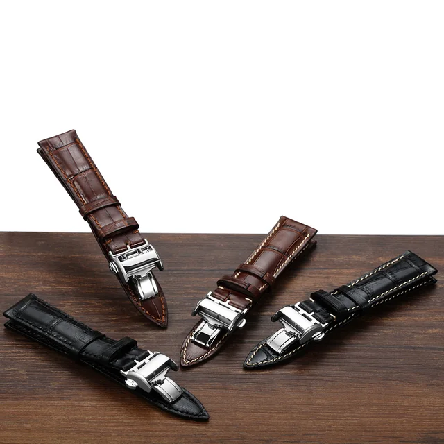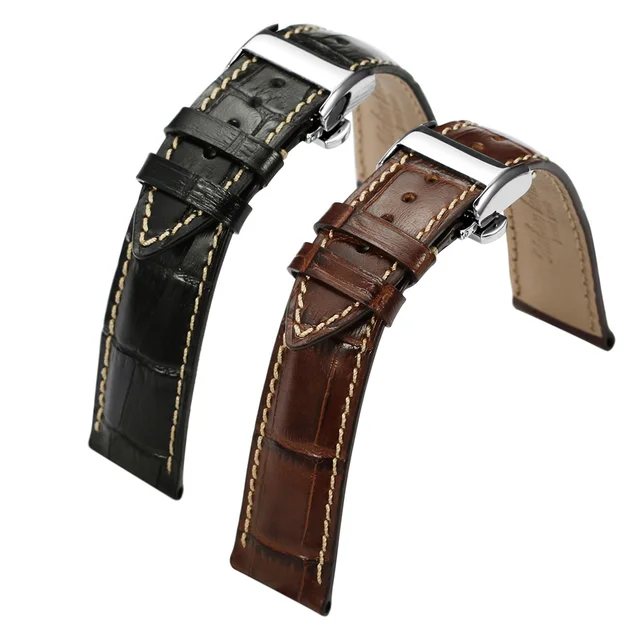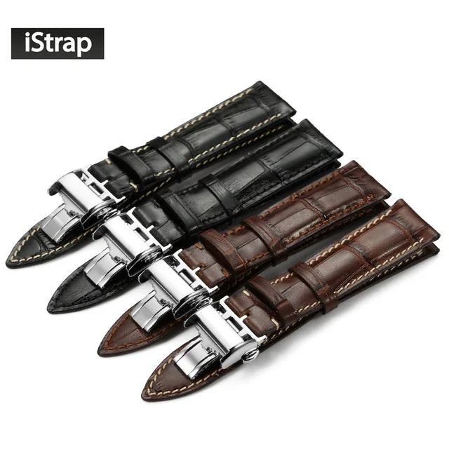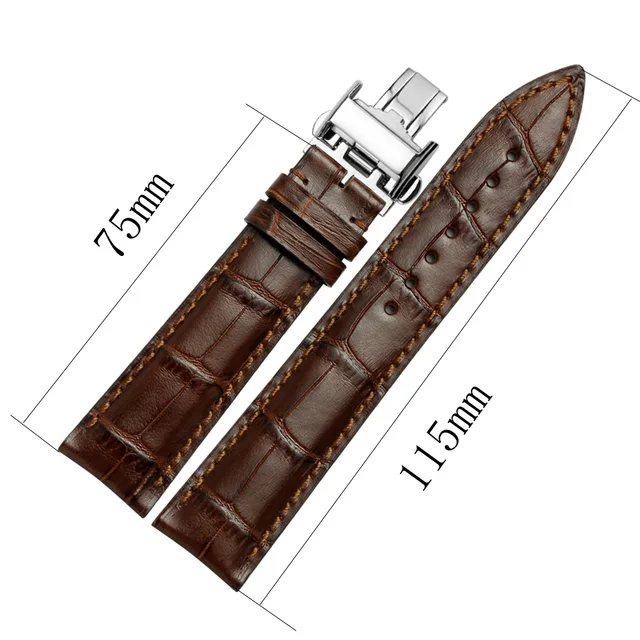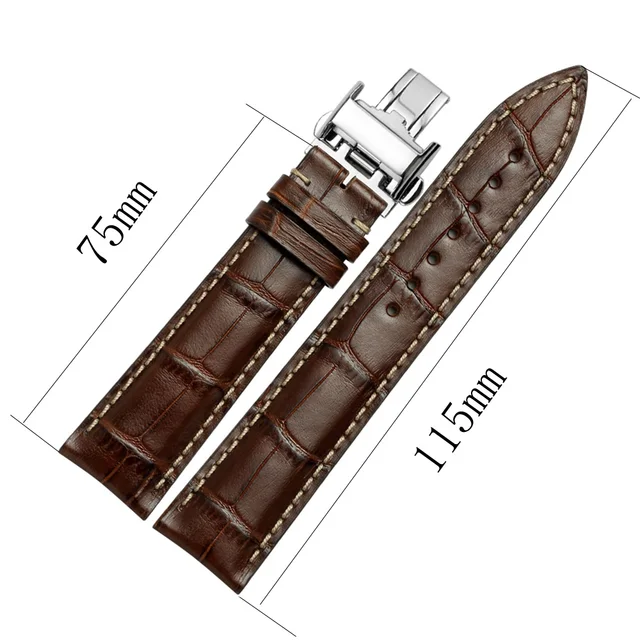 | [해외]Istrap 20 미리메터 21 미리메터 22 미리메터 블랙 브라운 이탈리아어 정품 가죽 시계 스트랩 실버 배포 버클 손목 longines 남성 |