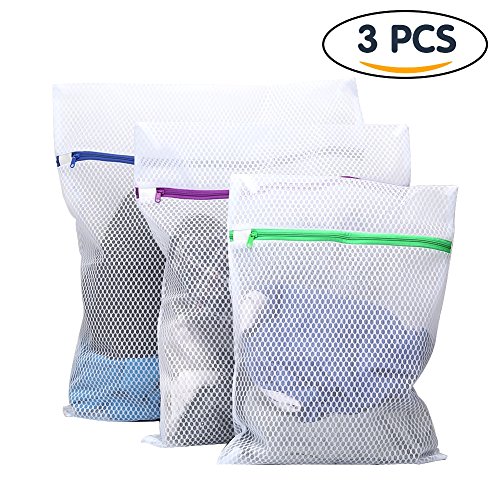Tenn Well Mesh Washing Bags, Set of 3 Durable Coarse Mesh Laundry Bag with Zip for Curtain, Jeans, Clothes, Lingerie, Delicates, Bras, Socks, Baby Clothes (White)