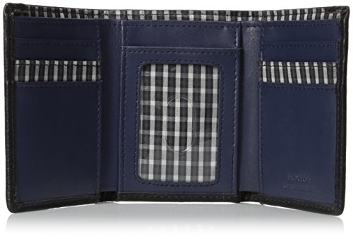 Studio : Buxton Men's Furnishings Publisher : Buxton Men's Furnishings Binding : Apparel Product Description Soft milled grain faux leather, accent color genuine leather interior with plaid design detail Tulsa RFID three-fold features RFID blocking lined credit card pockets, I.D. Window, currency compartment, multiple credit card slots and utility pocket. 0