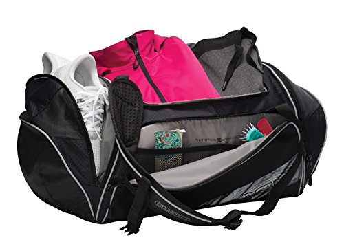 Product Description With its unique hideaway shoulder strap system the 4.5 merges the classic duffel with the travel-friendly versatility of a pack.420D cross dobby/210D hex ripstop Large main compartment High visibility liner Heavily ventilated mesh shoe compartment Nutrition-specific organization Zippered side pocket Sweat-resistant soft touch molded carry handle Front accessory zippered pocket Durable abrasion-resistant tarpaulin base Dimensions: 11 h x 25 w x 11 d Capacity: 2 875 cu.in./47L Weight: 2.8 lbs./1.3kgBags not intended for use by children 12 and under.** 0
