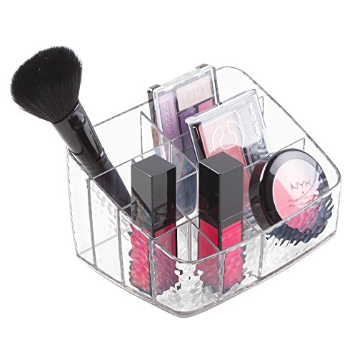 InterDesign Rain Cosmetic Organizer for Vanity Cabinet to Hold Makeup, Beauty Products - 10 Compartments, Clear