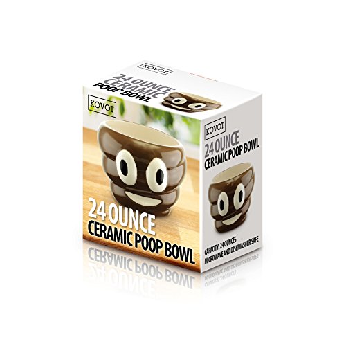 Studio : Kovot Publisher : Kovot Product Description Enjoy your cereal or soup in a bowl shaped like poop. The KOVOT Poop Bowl is a 24-ounce poop emoji bowl - everyone's favorite fella. Made of quality, hand painted ceramic, it is microwave and dishwasher safe. Bowl Measures: 3 1/2″H x 5 1/2″D 0