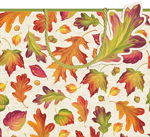Entertaining with Caspari 8930B3 11-3/4 by 4-3/4 by 10" Linen Leaves Gift Bag, Large, Orange