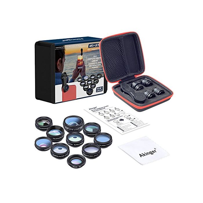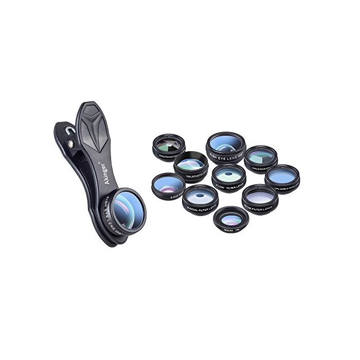 Akinger 10in1카메라 렌즈(유수 필터X방사 필터X4 선성필터XCPL렌즈X0.63광각 렌즈X15x매크로 렌즈X198도 어안렌즈X2X줌렌즈X만화경3X만화경6