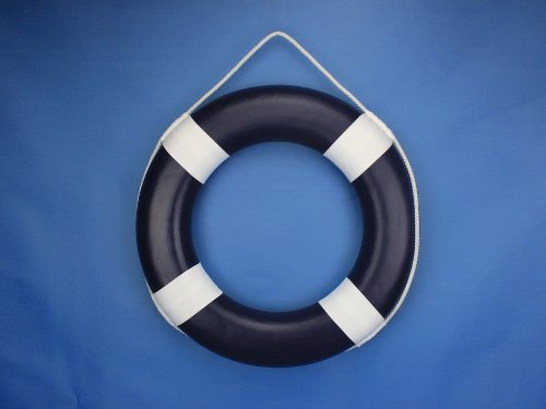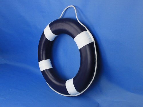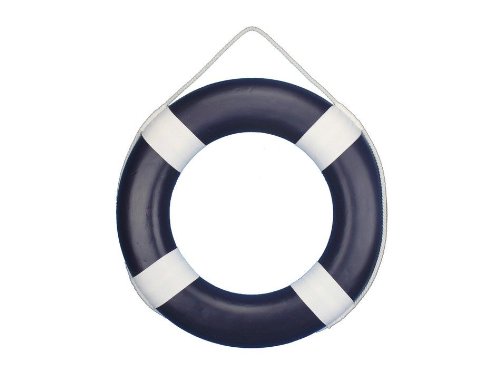 Hampton Nautical Dark Blue Painted Lifering with White Bands, 20"