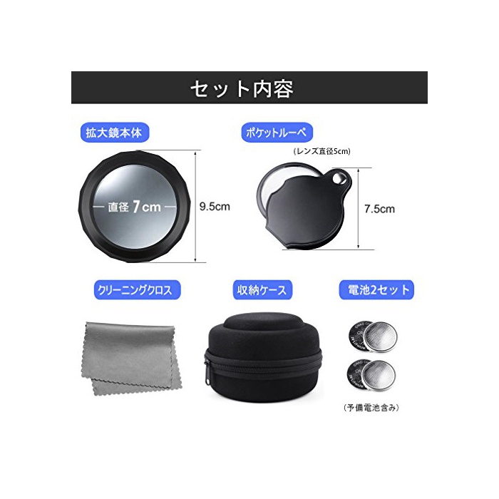 【경량으로 운반 편리】본체 중량은 불과160g.운반에 편리한 케이스가 부속 하고 있으므로,일상의 먼지나 만일 낙하할 때의 충격부터 확대경을 지킵니다.거기에(게다가),클리닝 크로스 부착에,언제라도 렌즈의 얼룩을 닦아낼 수 있습니다.