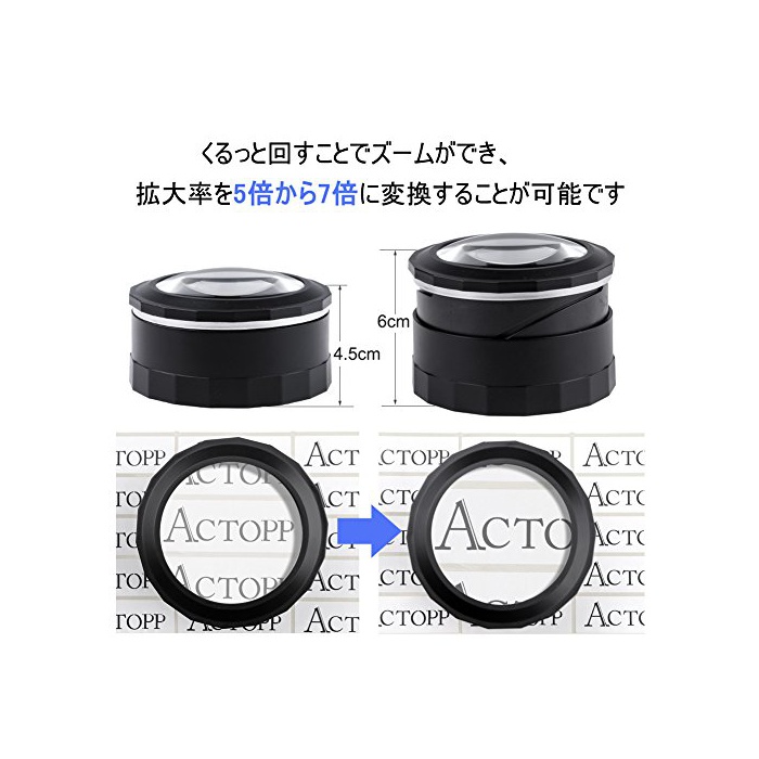 【배율 변경 가능】선명하고 상처가 붙어 어려운 유리 렌즈를 채용 하고 있으므로,아크릴 렌즈 보다 문자가 선명하게 보입니다.또한렌즈부를 돌리는 것에,배율을 5배에서 7배로 변환하는 일이 가능합니다.대상물 로 인해 확대하는 크기를 바뀝니다!
