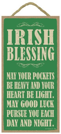 (SJT94242) Irish Blessing: May your pockets be heavy and your heart be light… 5" x 10" wood sign plaque
