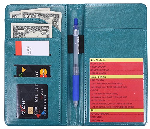 Mymazn Waiter Book Server Wallet Server Pads Waitress book Restaurant Waitstaff Organizer, Guest Check Book Holder Money Pocket Fit Server Apron (4.5 X 7.5, Turquoise Green)