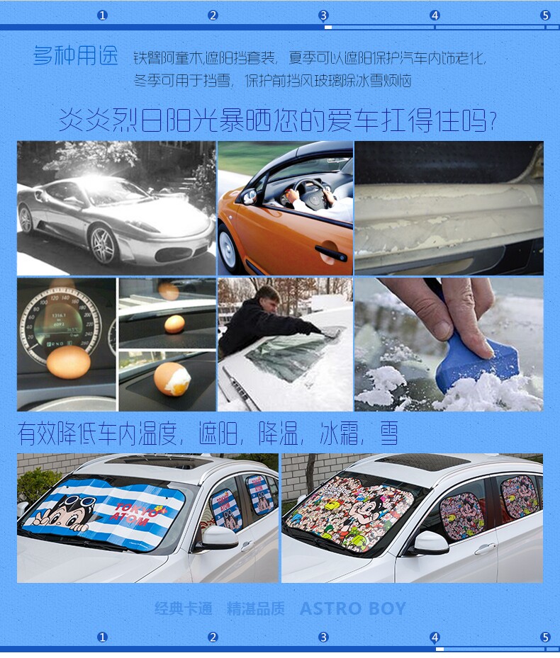 阿童木加厚汽车用品遮阳挡防晒隔热太阳挡遮光板前挡车窗侧挡套装