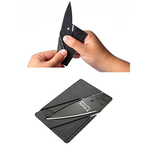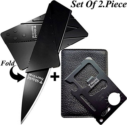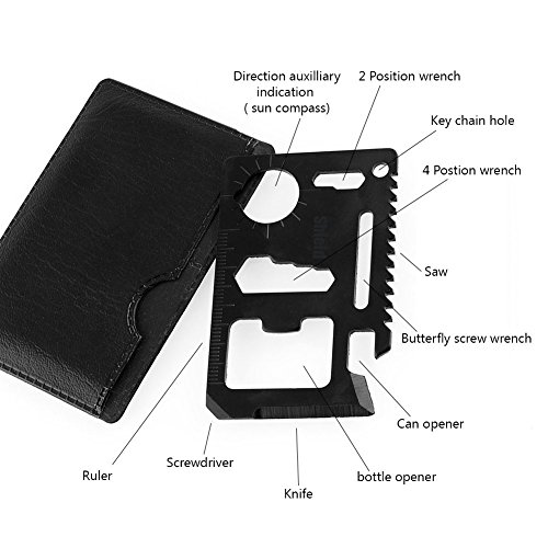 - CREDIT CARD MULTITOOL: Beer bottle opener, screwdriver, ruler, wrench, saw, knife, can opener and sun compass.