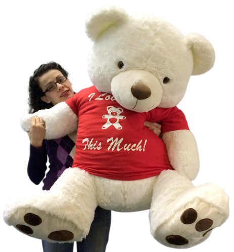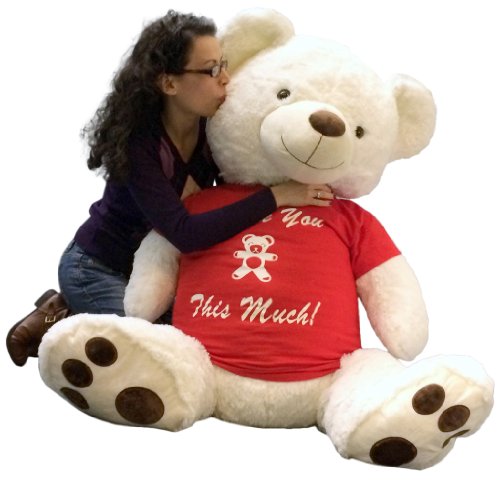 - Title : I Love You This Much Giant Teddy Bear 4 Feet Tall Squishy Soft White Color Wears I LOVE YOU THIS MUCH T-shirt