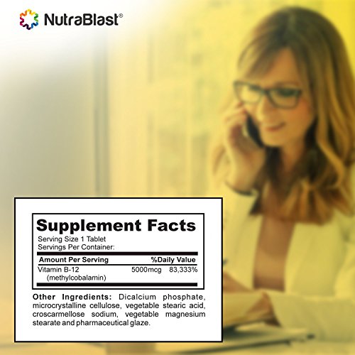Purpose of This Product While Vitamin B12 can be gained by eating certain foods, some adults will require higher levels of these vitamins due to naturally having deficient levels in their blood. One way to assist people with this problem is to take NutraBlast B12 5000mcg - 60 tablets. If you have been diagnosed with lower levels of Vitamin B12 than normal, then you should talk with your doctor about getting the support of this supplement. What Does the Supplement Help With? These are some of the best vitamins to take if your body needs support converting fats, carbohydrates and proteins into energy. Deficiencies often result in many chemical reactions being unable to be carried out. This supplement helps supports the health of your nervous system. Made From the Best In order to ensure your utmost satisfaction with these vitamins, this product is made from all-natural ingredients. These supplements are made to comply with Good Manufacturing Practice standards. Some other features you can expect from this product include: No preservatives, artificial colors or artificial flavors Gluten-free 60 tablets per container Take only as recommended by your healthcare professional Take one tablet with a meal Store the container in a cool, dry environment that is kept away from childrenFeature